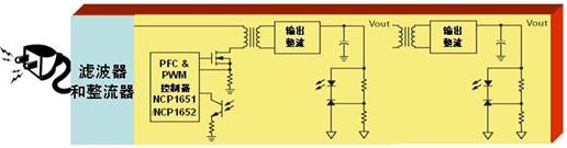 而在40 W至70 W的功率应用范围,也可采用NCP1271、NCP1219和NCP1288等固定频率控制器(其中NCP1219和NCP1288为新产品,即将推出),还可采用NCP1377、NCP1337和NCP1380等可变频率控制器。