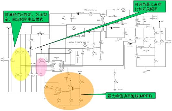 图2:安森美半导体CS51221控制器的太阳能板充电控制应用示意图