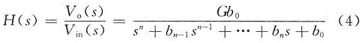 式中:G,bn-1,…,b0为适当选择的常数。图4低通滤波器要满足式(4)必须具备以下条件,