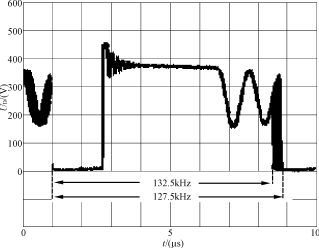 振荡器的频率均设置为132kHz。它能产生决定每个周期起始时间的时钟信号(CLOCK)和较大占空比信号(Dmax)。该振荡器还增加了频率抖动电路,开关频率的抖动范围是128kHz~136kHz,抖动量为±4kHz。频率抖动波形如图3所示。利用此功能可显著减小噪声