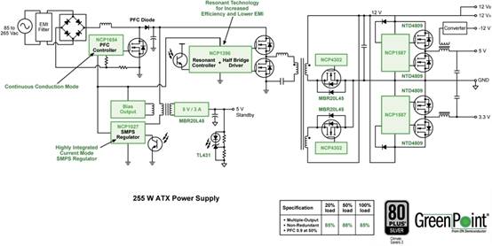 安森美半导体80 PLUS银级能效255 W ATX电源参考设计概览