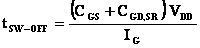为了防止击穿和导致的不必要的功率损耗,在一个电压加在它两端之前,SR必须完全关断,通常是开启1个以上的初级开关电路。为了使设置保证满足这个条件,同时尽可能长时间使SR的效率增至较大,必须知道关断SR需要多长时间。参见图2的MOSFET模型,关断时间可以利用下式计算: