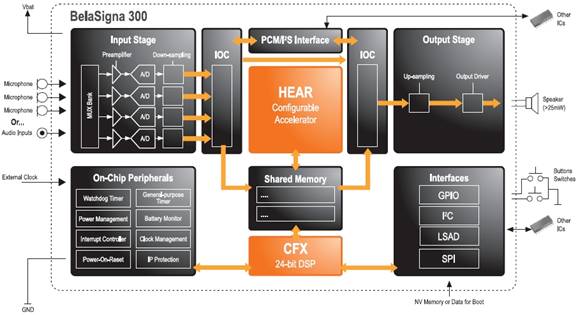 图1:安森美半导体BelaSigna® 300音频处理器的功能模块图