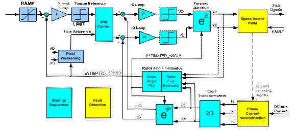 图2. 无传感器电机控制算法。