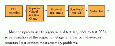 过去,电路板直接进行功能测试,电路板接通电源和激励信号,来考察其是否能满足设计(图1)。测试将在正常的设计频率和速度下执行。这样的测试是在钉床型的在线测试仪(ICT)上实现的。缺陷被发现并修复。