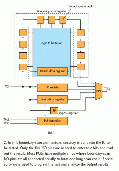 1990年,IEEE批准了被称为边界扫描的1149.1标准。该标准由联合行为测试组(JTAG)开发,其开发用于帮助解决由日益增加的较大规模IC和高密度多层印制电路板(PCB)所引发的不可阻挡的测试问题。