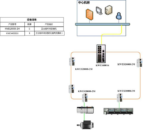 1、该系统采用KWES40016(百兆光模块)与KWES20008-2M组成的100M多模光纤冗余环网通讯系统。工业以太网交换机将分散在现场的多个监控点可靠的联接起来,组成光纤100M冗余环网通讯平台,保证了通讯数据的可靠传输。