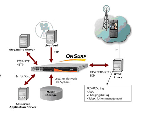以色列SURF公司是由Ti, Intel和Motorola 投资的多媒体设备制造厂商,其产品主要定位于3G,4G视频通信网和NGN,IMS多媒体通信网。Onsurf 流媒体服务器是SURF 公司近期推出的系统级视频产品。
