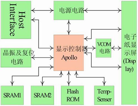 显示控制器Apollo芯片是NXP公司开发的一种TFT(thin film transistor,薄膜晶体管)主动矩阵(active matrix)电泳(Electrophoretic)显示的显示控制器,是电泳显示参考系统电子设计的一部分。Apollo芯片适合800 X 600像素,支持1-bit和2-bit显示。屏幕高宽比(aspect ratio)为4:3,同时驱动源极驱动(source driver)和栅极驱动(gate driver);支持握手协议的8位并行双向异步数据总线接口,主接口较大通信速率是10Mbytes/s。