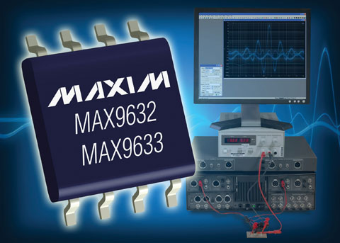 的超低输入电压噪声密度、125µV (较大值)的低失调电压以及0.5µV/°C (较大值)的失调温度系数。MAX9633为双通道运算放大器,输入电压噪声密度为3nV/