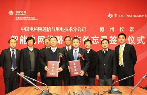 德州仪器与中国电力科学研究院联合签署智能电网战略合作备忘录