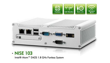 NISE 103 无风扇电脑是一个专为行业应用准备的高性价比的控制器,采用性能强大的Intel® Atom™D425处理器和DDR3内存。 该系统的低功耗和无风扇的设计,使NISE 103成为自动化控制领域的低成本效益且高可靠性的解决方案。