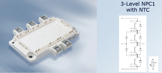 三电平技术的主要应用包括中压马达驱动(3.3kVac-4.16Vac、兆瓦级)、不间断电源/太阳能(几千瓦至几十千瓦、数百千瓦)。英飞凌提供全系列中小功率三电平模块产品。NPC1 EconoPACK™4、NPC2 EconoPACK™4和NPC1 EconoDUAL™3都是采用三电平的模块产品。其中NPC1为I-型电路,NPC2为T-型电路。