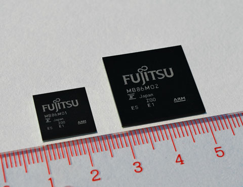 富士通自主开发的转码技术可使H.264/MPEG-2全高清转码器的功耗达到业界领先水平。产品更内置了1 Gb的存储器(FCRAM)。基于内置存储器技术和小型化芯片处理技术,在运行H.264全高清转码率功能时系统功耗仅为1.2W。此外,其中两款产品的封装尺寸仅为13mm^2,,可以广泛应用于各类产品中,如笔记本电脑,智能手机及平板电脑的配件,以及家电设备中。