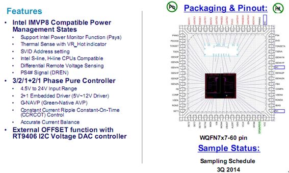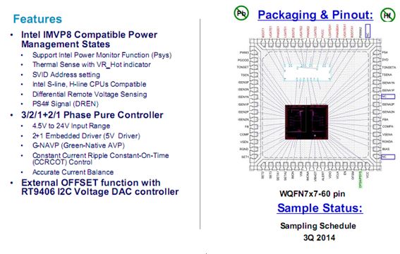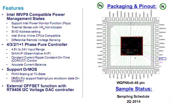图示9-大联大品佳代理的立锜科技的RT3607CE: 4+3 Phase PWM Vcore Controller for Inter IMVP8 S-line CPUs