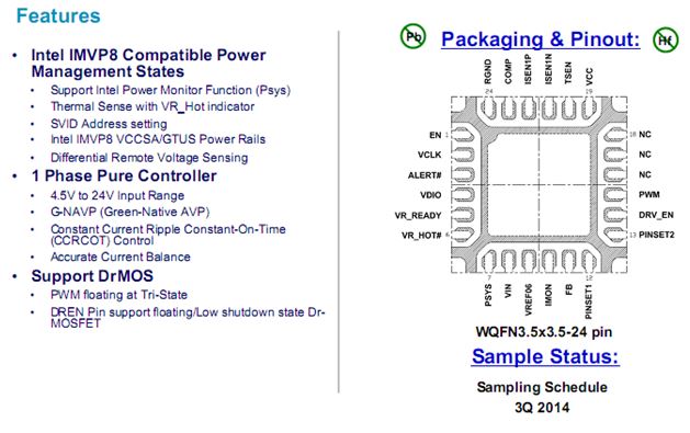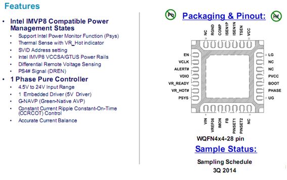 Phase PWM Vcore Controller for Intel IMVP8 H-line CPUs