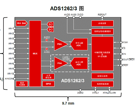 据介绍,日前开始供货的ADS1262及ADS1263均采用9.7mm x 6.4mm薄型小外形尺寸封装 (TSSOP)。