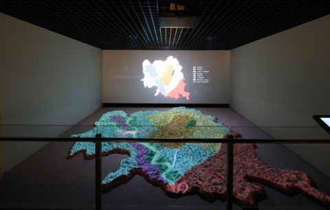 在绥德古城3D沙盘展示区,处于不同位置和角度的7台Pro10100精诚合作、各司其职,联手打造出栩栩如生的投影效果,在复杂的3D轮廓和多变的崎岖表面上完美地映射出苍天、黄土、灰墙和绿荫的摸样,真实地再现了绥德古城依山傍水的地理位置、扼守险要的城郭全貌以及高低错落的府、市、墙、哨等细节,还原绥德的昔日盛况,在历史长河中沉睡千年的“秦汉名邦”就此苏醒,生机勃勃地重新出现在绥德县博物馆中。而以两台Pro10100投射出的绥德县地貌沙盘,直观地展现出绥德县境内和周边的山、水、沟、壑,使参观者在博物馆的展示区内就对绥德的地理位置一览无余,真切地体会到绥德县成为陕北“旱码头”的必然性。
