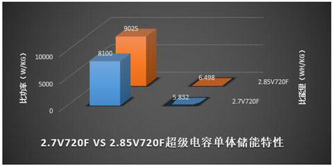 2.7V系列超级电容的升级产品——2.85V升级单体,在超级电容固有的优异储能性能基础上,进一步、大幅提高了产品储电量。该系列产品目前涵盖720F/800F/4200F 三个容量,可谓风机变桨、新能源汽车储能装置的不二之选。与同容量段2.7V超级电容单体相较,其优势如下: