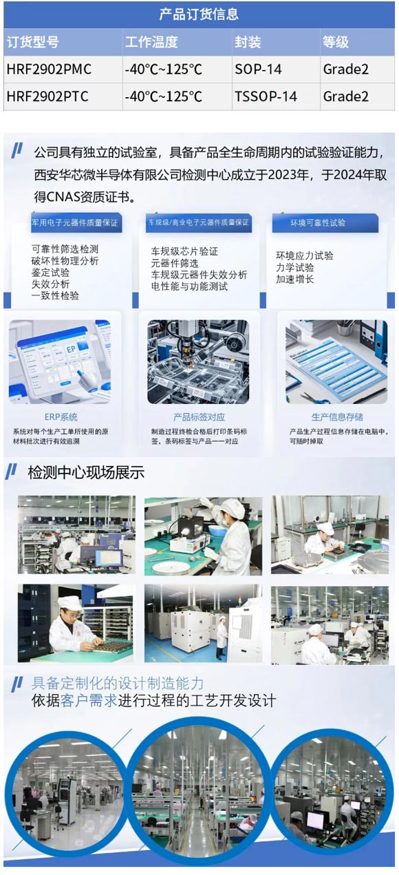 HRF2902 的封装类型主要是SOP14 和TSSOP14,所有封装类型的工作温度范围为-40℃至125℃。