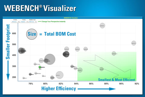 黄汉基介绍说,WEBENCH Visualizer设计工具设有性能优化按钮,工程师只要点击该按钮,便可输入他们需要的方案大小、物料成本及能源效率等参数。该设计工具将即时从480亿个设计方案中筛选出50至70个参考设计,从中给出体积较小且效率较高的两款设计,并较终建议采用其中一款,从而使工程师以此为基础进行进一步系统性能优化。