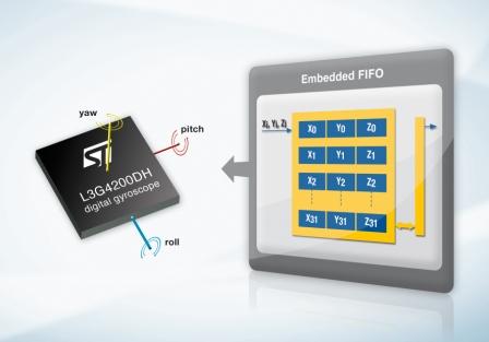 全球较大的消费电子和便携设备MEMS传感器供应商[1]意法半导体(纽约证券交易所代码:STM)进一步扩大运动传感器产品阵容,推出一款高性能的三轴数字输出陀螺仪。新产品内嵌一个FIFO(先入先出)存储器模块,可实现智能化程度更高的电源管理。