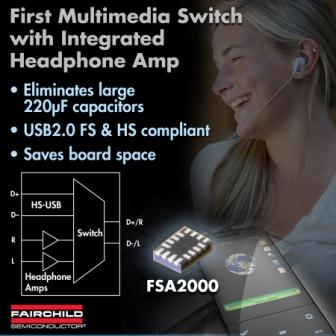 飞兆半导体公司(Fairchild Semiconductor)专注开发提升用户满意度以及使产品取得市场成功的模拟和功率功能,为手机设计人员提供一款集成有无电容耳机音频放大器的自动选择高速USB开关FSA2000,这是业界首款同类型集成式USB开关器件,而且能够减少元件数量、电路板占用空间并降低材料清单(BOM)成本。