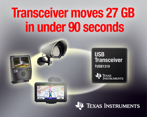 德州仪器推出业界首款分立式 SuperSpeed USB 3.0 收发器速度比 USB 2.0 高 10 倍