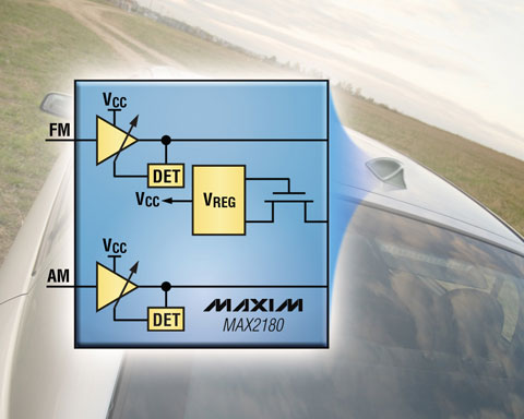 Maxim推出集成自动增益控制(AGC)的低噪声放大器(LNA) MAX2180,适用于汽车天线应用。该款LNA采用Maxim先进的CMOS工艺设计,具有独立的AM和FM信号接收通路,每通道的增益范围可达30dB。完全集成的方案在优化性能、简化工作的同时可有效降低BOM成本。