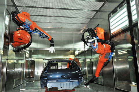 上海,2010年8月3日——全球领先的电力和自动化技术集团ABB宣布,其机器人喷涂实验中心近日在位于上海浦东康桥的上海ABB工程有限公司内正式落成。该喷涂实验中心主要由整车喷涂和针对制造工业喷涂应用为主的车间组成。该实验中心是中国首个也是唯一一个机器人整车喷涂实验中心。在实验中心内,客户可通过使用ABB先进的喷涂技术对汽车喷涂工艺进行全面测试和模拟。