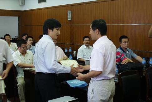 汤天浩教授为参加研修班的学员颁发中国电源学会证书
