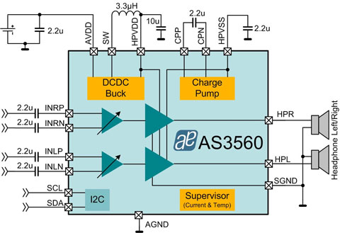 AS3560/3561耳机功放大幅延长了音乐播放时间且保持卓越的音频性能