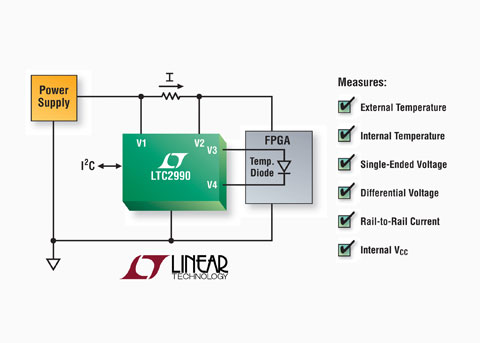 凌力尔特公司推出一款面向 3V 和 5V 系统的 I2C 温度和电压监视器 LTC2990