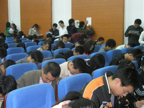 学生们认真地填写宣讲调查表