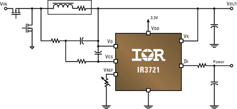国际整流器IR3721 TruePower™ 监控利用这种技术来以高精度采集高度动态功率信息。该器件有助于设计人员在转换器的输出端实现一个附加电阻器,它可以用于检测目的,或检测者转换器输出滤波电感器的等效DC电阻的电流(DCR)。这种技术无需分立式检测电阻器,有助于实现无损耗功率测量。