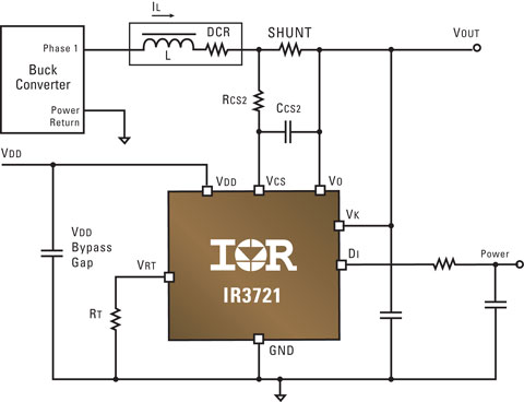 图4显示了IR3721的典型应用电路,可以检测电感器等效DC电阻的电流。