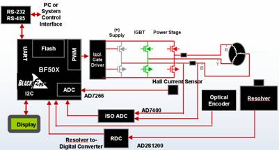 基于BF50x的电机控制系统硬件功能框图。