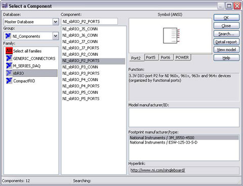 自定义接头:没有设计工具拥有全部的接头符号,特别是在使用特定公司的硬件时(如美国国家仪器),创建接头的符号和焊盘布局非常耗 时。若采用多个精确距离的引脚,则需要花费数天创建接头库。难免有时会犯错误,而一个不精确的符号又会导致几个小时的模型设计工作化为零。设计NI硬件 时,Multisim建立了包含NI Single-Board RIO、CompactRIO和M系列DAQ的接头库,简化了设计。这一接头库使得设计环节的时间得以大幅节省。
