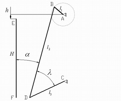 颚式破碎机是典型的曲柄摇杆机构,其机构图如图1所示