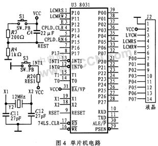 快速测量的要求必须保证高精度测频,必须采用高精度的标准频率信号。由于单片机受本身时钟频率和指令运算限制,因此,测频速度较慢,无法满足高速、高精度测频要求。采用高集成度、高速可编程门阵列CPLD可实现快速、高精度测频。其硬件电路如图4所示。