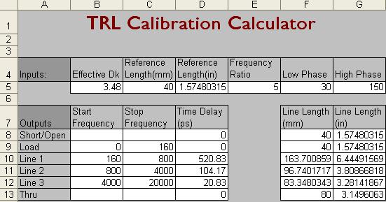 图5一个创建TRL校准套件的例子