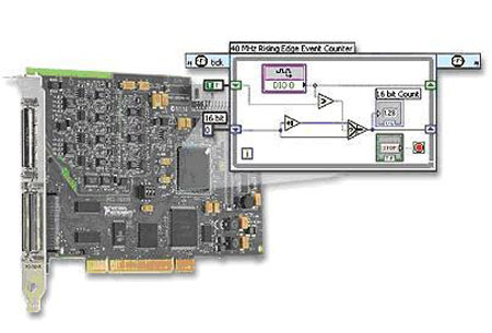 NI 的R系列设备并没有使用一块固定的ASIC进行设备功能的控制,它使用了一块不同大小的用户可配置的现场可编程门阵列(FPGA)芯片,提供了板载处理和灵活的I/O操作。