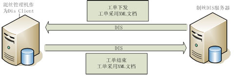 MES 系统通过DIS方式 下达工单信息、工艺参数到中控管理机,中控管理机作为DIS Client获得上述工单任务,工单任务采用XML文档,由于iFIX丰富的数据接口,支持对XML文档进行解析,因此集中监控系统把XML文档解析成实际的生产任务。生产线按照生产任务进行生产。
