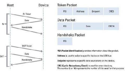 图2USB主机端通过输入令牌后接数据和握手包来发起交互