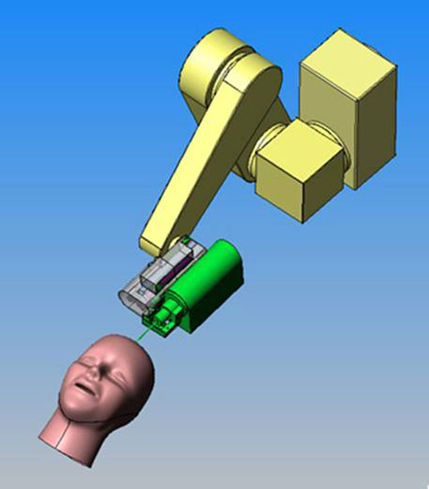 我们将注意力集中在把PRS系统的应用扩展到更为常见的椭圆肿瘤病变的病人。辐射量必须沿肿瘤病变的主轴进行分布,从而使辐射球形范围可以覆盖到整个肿瘤病变区。由于执行该动作需要一定的精度,因此需要用到机器人系统。所以,我们开发了用于神经外科的线性驱动器(LANS)。