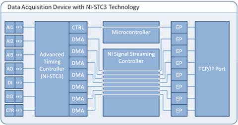 图5. NI专利的信号数据流传输技术实现了基于TCP/IP的多测量任务的高速双向并行数据流传输