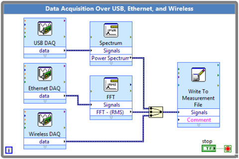 由于认识到测量系统需求的多样性,NI已经开发了一套独立于PC总线技术的数据采集软件架构,用户使用同一套NI-DAQmx驱动软件,就可以于PCI、PCIe、PXI、PXIe、USB、以太网和Wi-Fi等多种总线上的NI数据采集硬件进行通讯获取数据。用户为USB接口的NI CompactDAQ系统开发的软件,不需要进行任何修改就可以直接用于以太网接口的NI CompactDAQ系统上。此外,NI-DAQmx驱动的API能够兼容多种编程平台,用户可以使用LabVIEW、C/C++、C#或微软VB.NET等编程工具对NI CompactDAQ进行编程。