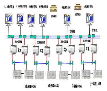 该系统可分为操作管理级和过程控制级。操作管理级包括操作站OS、工程师站ES、网关GS。在操作管理级上不仅可以实现传统的控制系统监控操作功能(预定义及自由格式动态画面显示、趋势显示、弹出式报警及操作指导信息、报表打印、硬件诊断等),而且能完成配方管理及数据交换等管理功能。过程控制级可以由一个或几个过程站组成,每个站都包括AC800F和扩展I/O S800单元。过程站CPU和I/O单元均可以配置为冗余或不冗余系统,系统具有各种I/O模块可以与现场各类过程信号相连接。