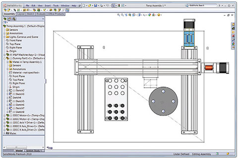 运动轮廓是所有机械的基石。较简单的情况是将物体A从 B处 移到 C处。但是在某些情况下,您从B到C的较佳方式并不那么显而易见。一步运动还是两步?凸轮还是伺服?利用CAD可以快速地安排机械的运动部件,并检查冲突与运动范围。由于大多机械并不是从草图开始的,较初的CAD组装很可能是3D模型与布局草图或是结构图的混合体。