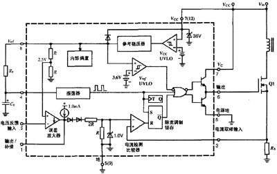 图2 UC3842的内部结构及基本外围电路